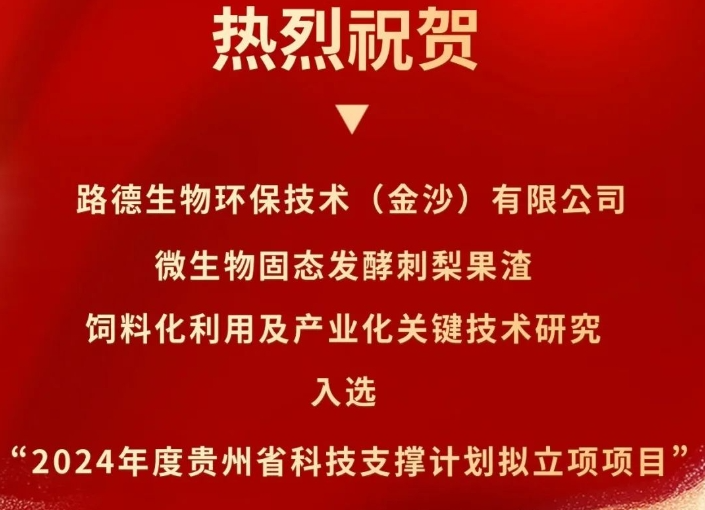 近日,贵州省科学技术厅公布了省科技计划拟立项项目,九游jiuyou(中国)环境旗下子公司——九游jiuyou(中国)生物环保技术(金沙)有限公司承担的“微生物固态发酵刺梨果渣饲料化利用及产业化关键技术研究”项目,入选“2024年度贵州省科技支撑计划拟立项项目”。 此项殊荣,是九游jiuyou(中国)环境以技术创新,引领有机糟渣资源化业务从白酒糟向其它食品饮料糟渣多元拓进、开辟公司可持续发展新赛道的重要一步。未来,随着该科研项目不断取得新突破,势必将与贵州刺梨产业“延伸产业链、完善供应链、提升价值链”形成高度匹配,为贵州省打造百亿级特色优