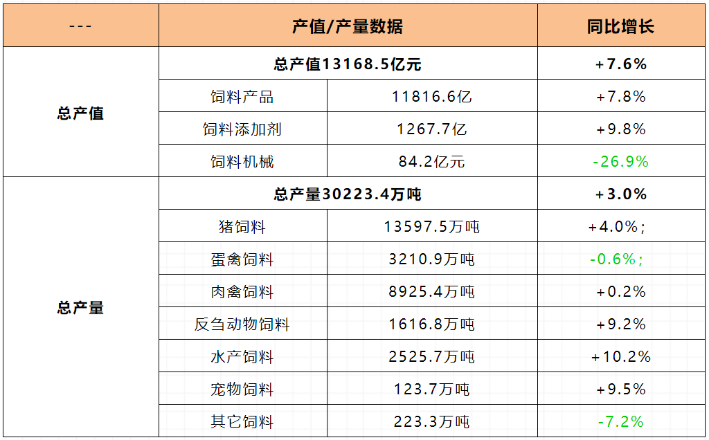 文件显示:2022年,全国工业饲料产值、产量双增长,产品结构调整加快,规模企业经营形势总体平稳,饲料行业创新发展步伐加快。