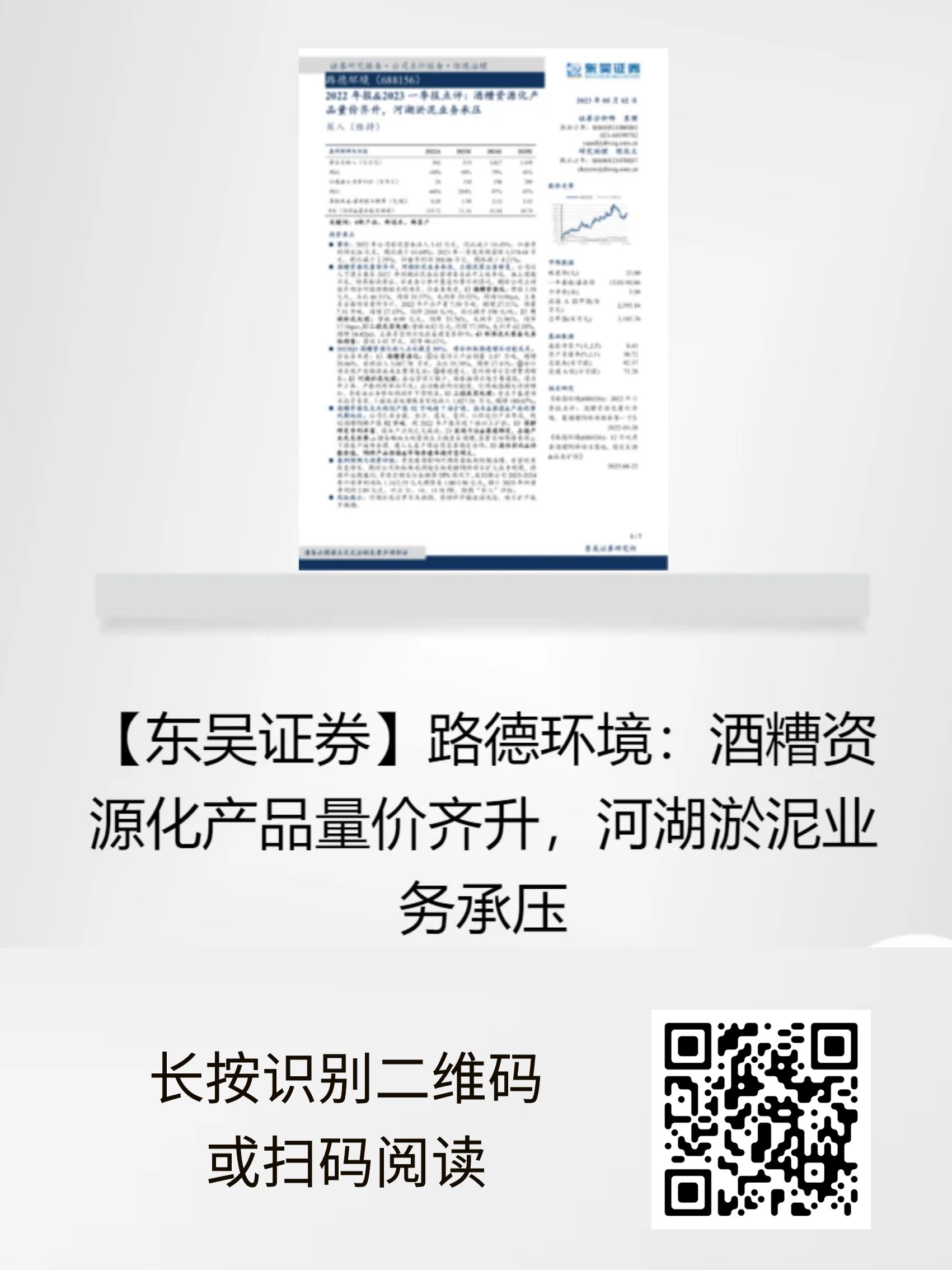 【点评报告】东吴证券点评九游jiuyou(中国)环境:酒糟资源化产品量价齐升,河湖淤泥业务承压