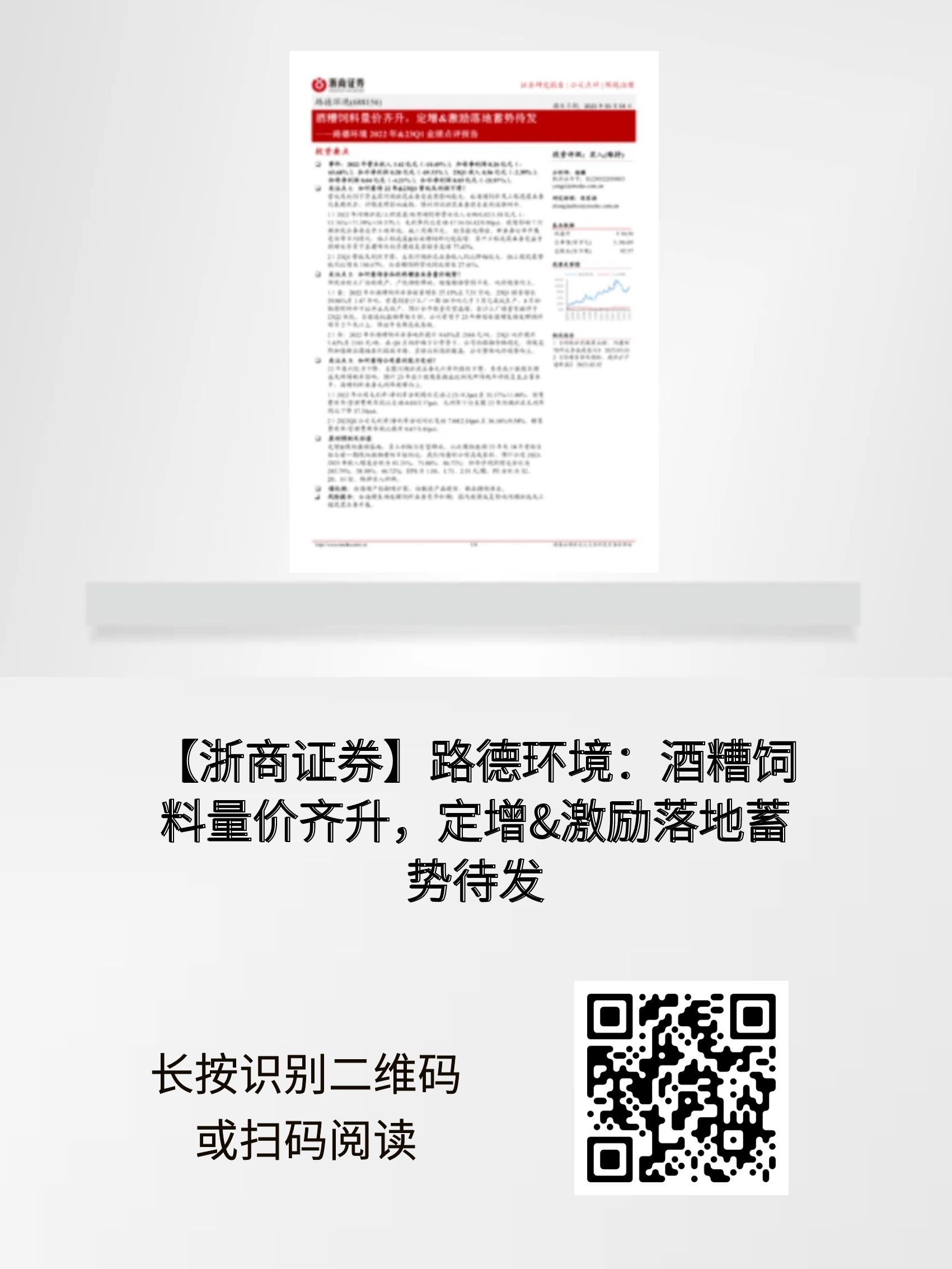 【点评报告】浙商证券点评九游jiuyou(中国)环境:酒糟饲料量价齐升,定增&激励落地蓄势待发。