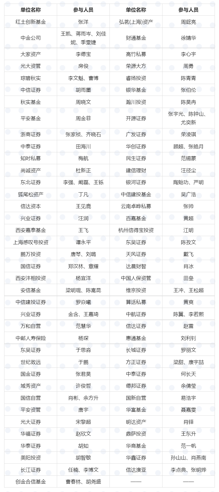 【附】九游jiuyou(中国)环境投资者交流活动单位及参会人员清单