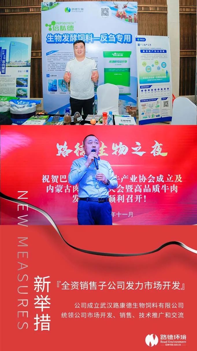 2023年,公司白酒糟生物发酵饲料产品先后亮相河北首届唐羊文化节和内蒙古肉牛产业大会,借力行业盛会,加强品牌建设和推广,聚力市场开发。12月,公司成立全资销售子公司——武汉路康德生物饲料有限公司,统领公司市场开发、产品销售、生物技术推广和交流。