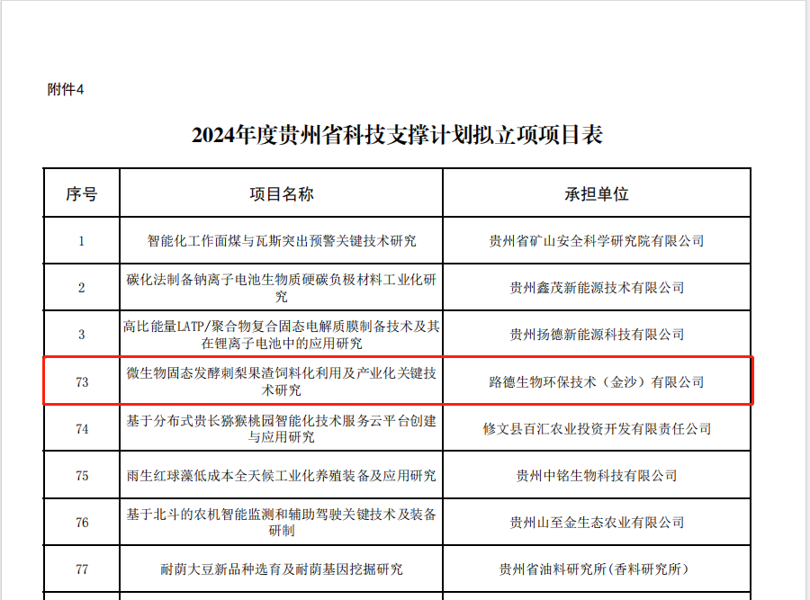近日,贵州省科学技术厅公布了省科技计划拟立项项目,九游jiuyou(中国)环境旗下子公司——九游jiuyou(中国)生物环保技术(金沙)有限公司承担的“微生物固态发酵刺梨果渣饲料化利用及产业化关键技术研究”项目,入选“2024年度贵州省科技支撑计划拟立项项目”。